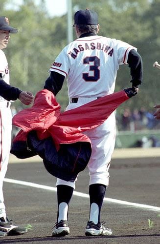 この年、FAで獲得した江藤智に背番号「33」を譲り、長嶋は現役時代の背番号「3」に変更。長嶋の背番号3を見たさにファンやマスコミが多摩川グラウンドに押し寄せて、大賑わいとなった。