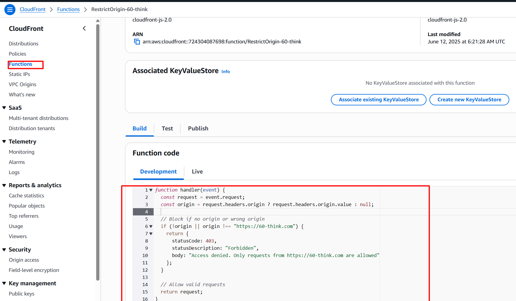 Create Restriction CloudFront Functions to limit origin