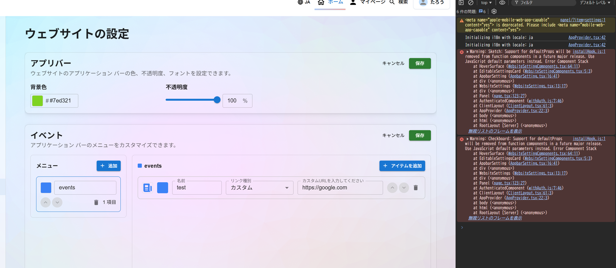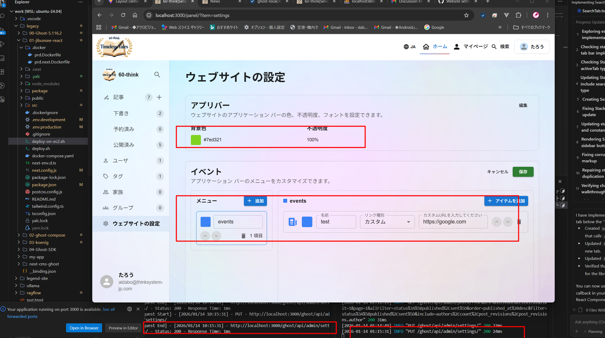 サイトバー情報とメニュの情報が保存されないです。Ghostログを確認してAPIを呼び出しているみたいです。エラー情報なし。
