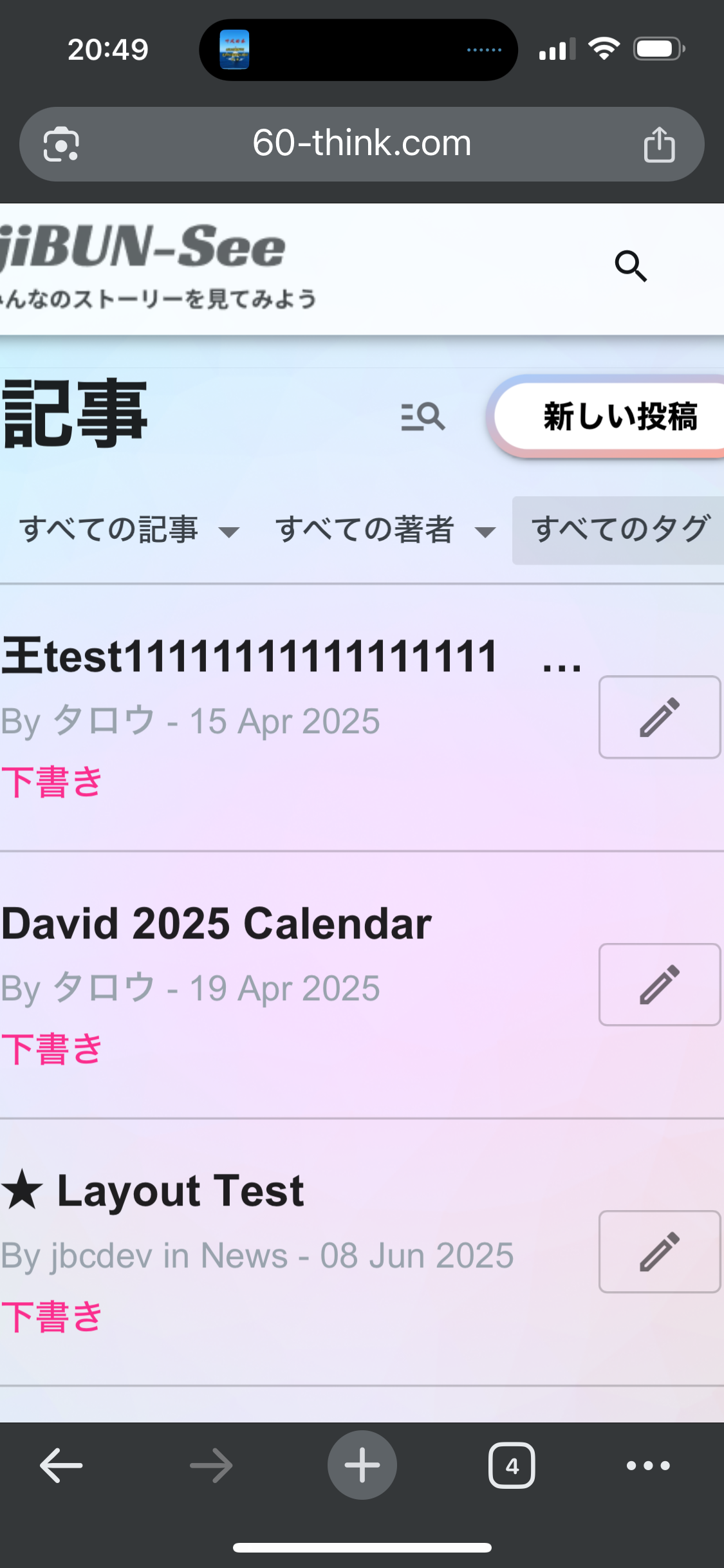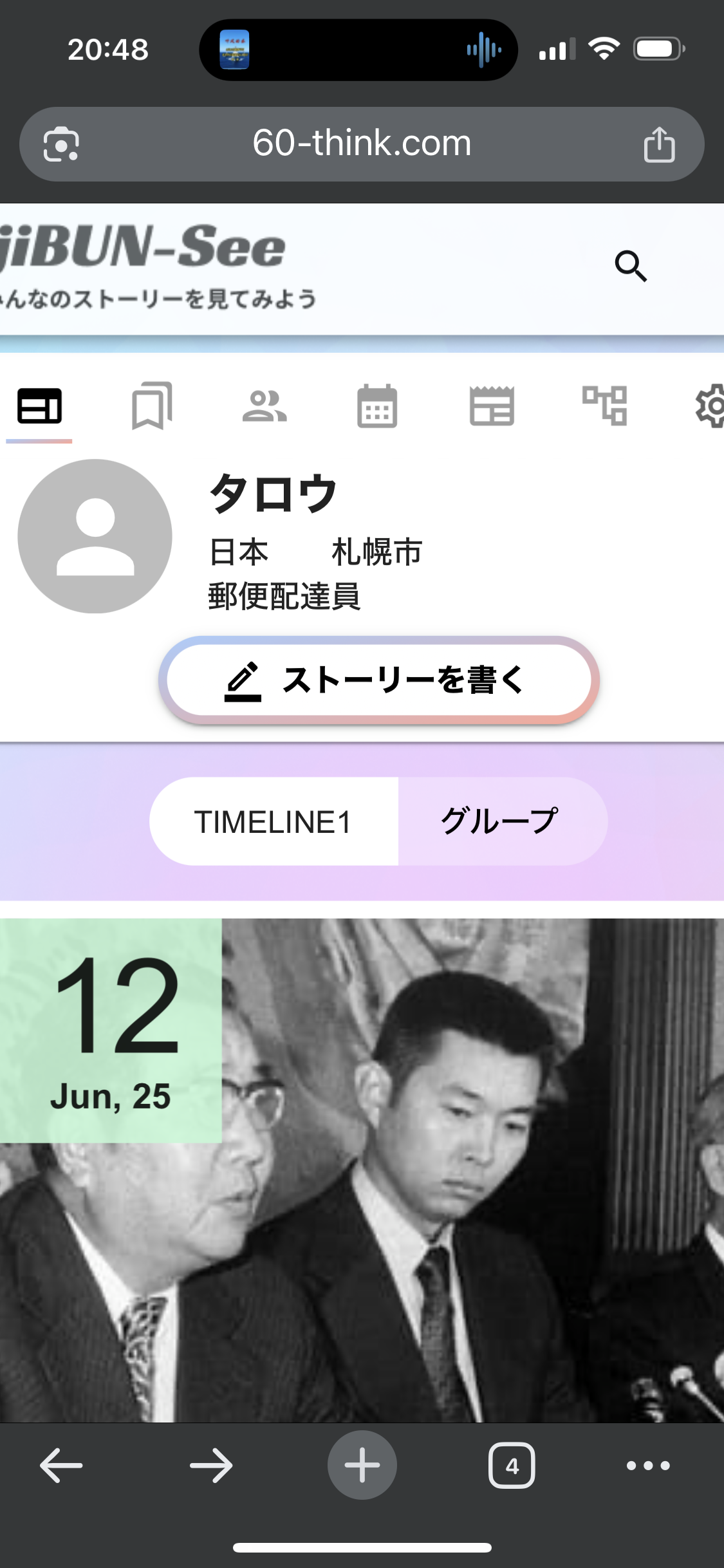 携帯からマイページからストーリ書き込みボタンで編集画面に入ると グループボタン表示されない