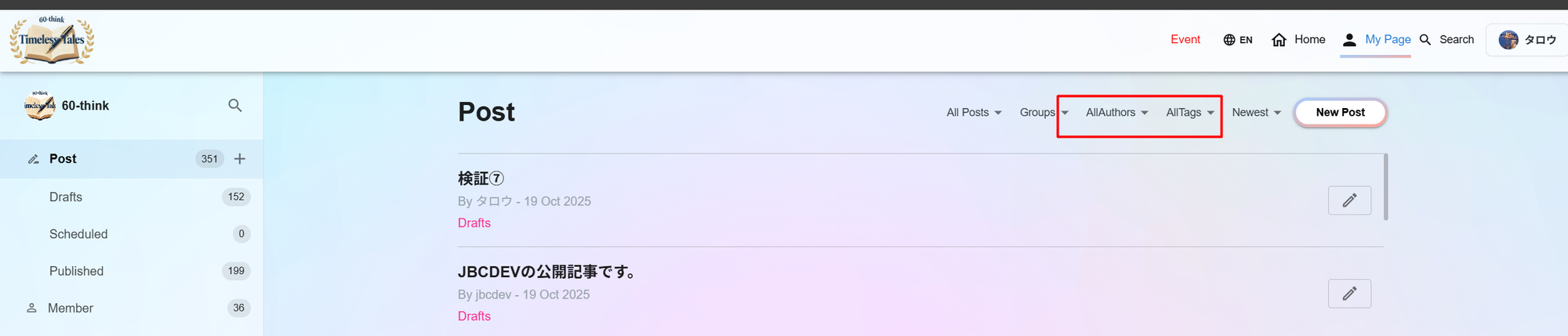 AllAuthors、AllTags ⇒All Authors 、All Tagsに変更