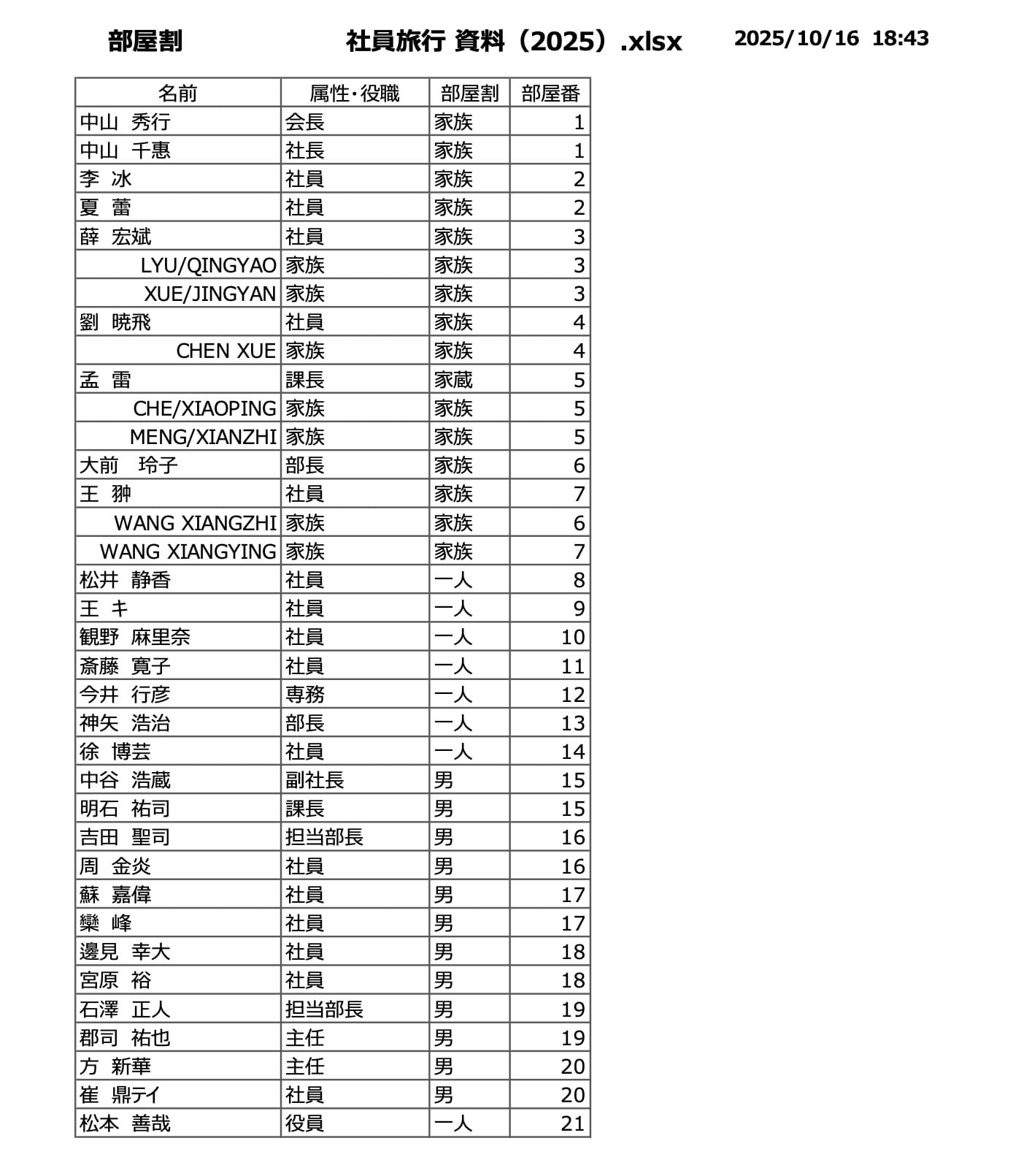 現地空港MeetMAPと部屋割表